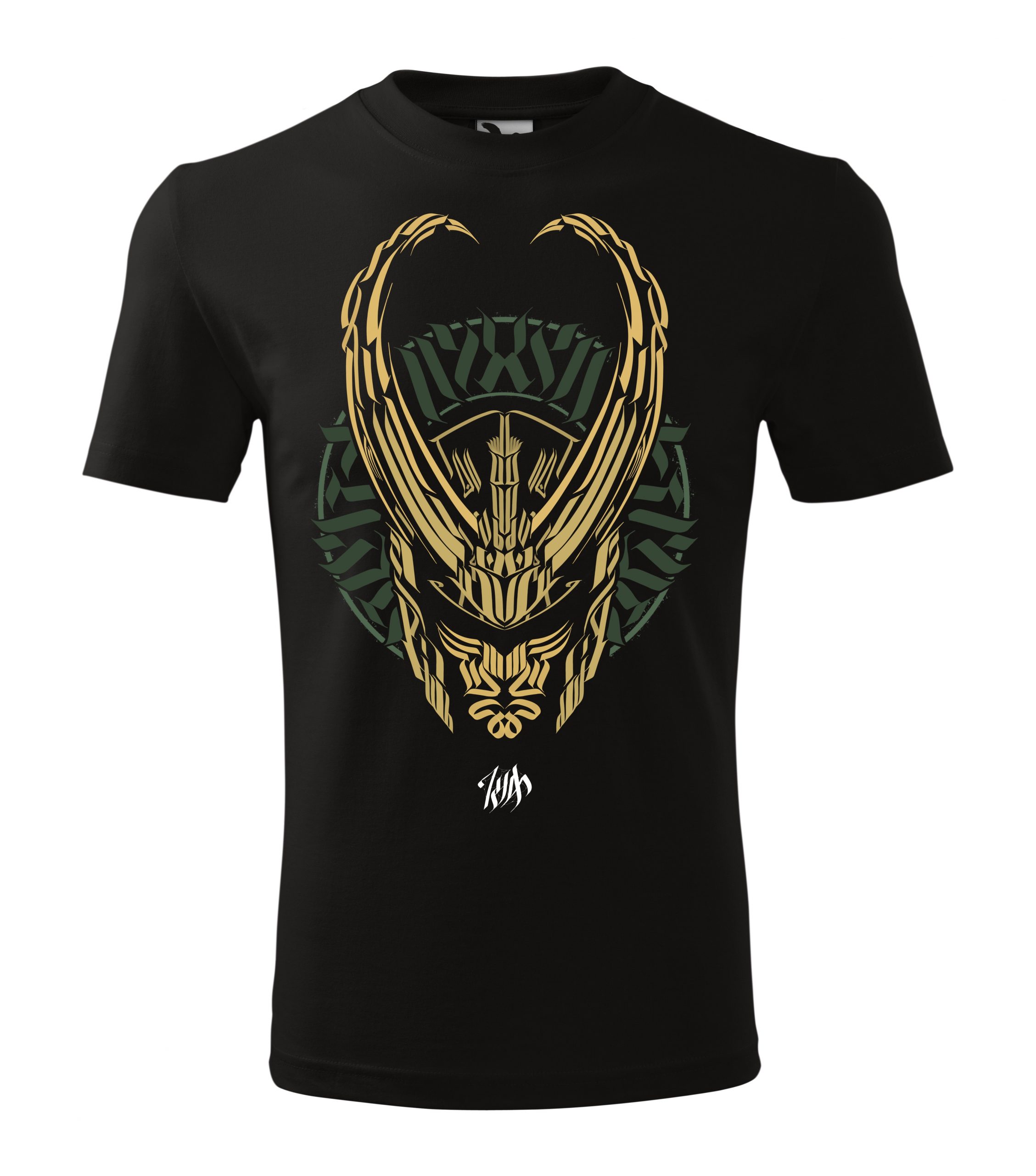 Crna pamučna majica sa LOKI u unikatnom stilu kaligrafije.
